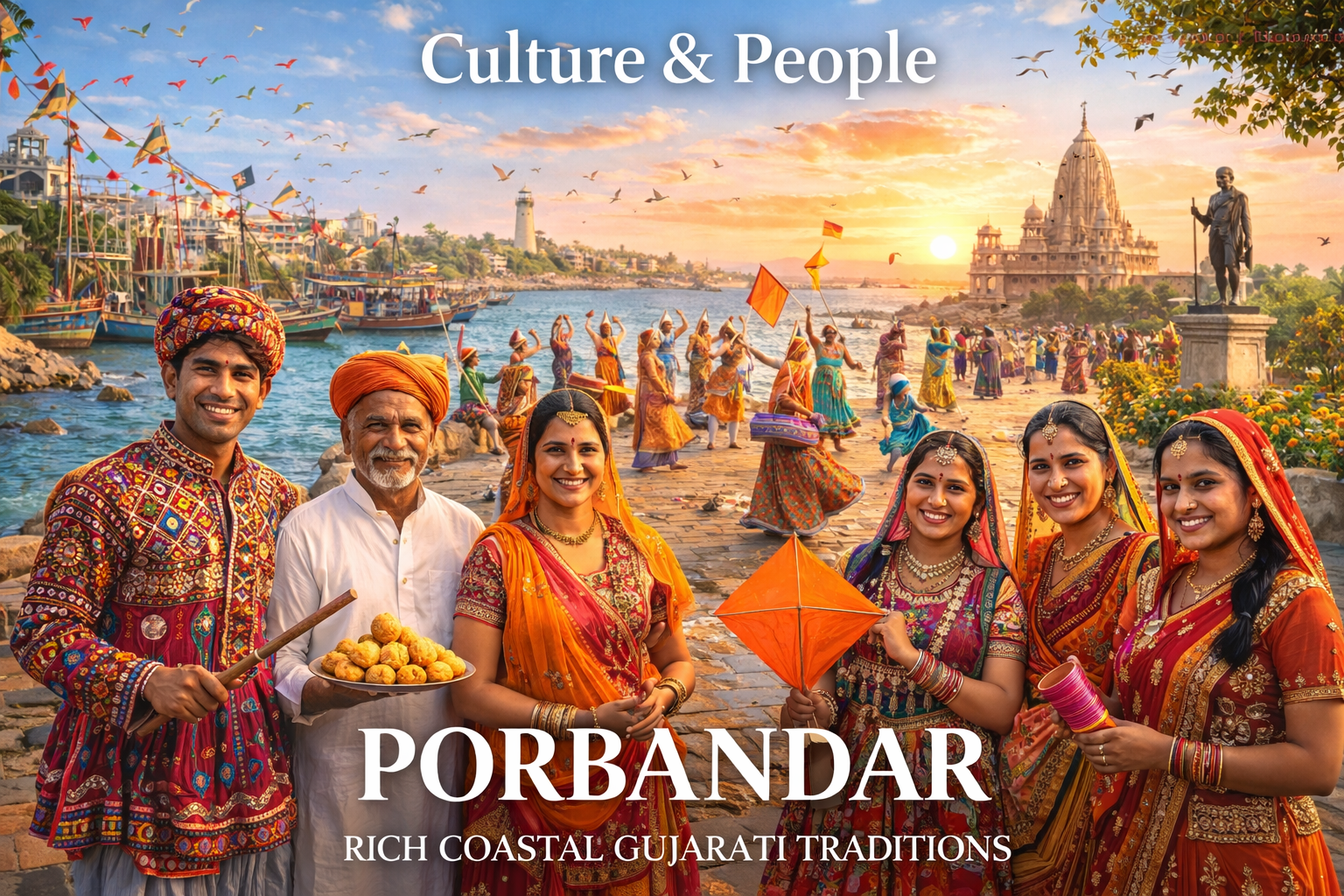 Porbandar is known not just for its history and coastline, but for the warmth, simplicity, and resilience of its people. The culture here reflects a beautiful blend of coastal traditions, Gujarati heritage, and Gandhian values, shaping a community that is welcoming and grounded.